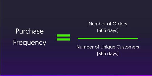 購買頻率一般是指顧客在給定時(shí)間段(通常是一年)內(nèi)進(jìn)行的購買次數(shù),通過將過去 365 天的訂單總數(shù)除以同期的顧客人數(shù)得出。
