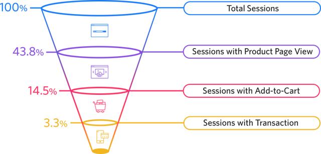 購物車放棄率是一個(gè)廣泛的指標(biāo),由一系列微觀轉(zhuǎn)化決定。具體來說,這些微觀轉(zhuǎn)化包括:單擊“繼續(xù)進(jìn)行結(jié)帳”按鈕、從購物車頁面轉(zhuǎn)到結(jié)帳頁、在結(jié)帳期間成功完成付款。