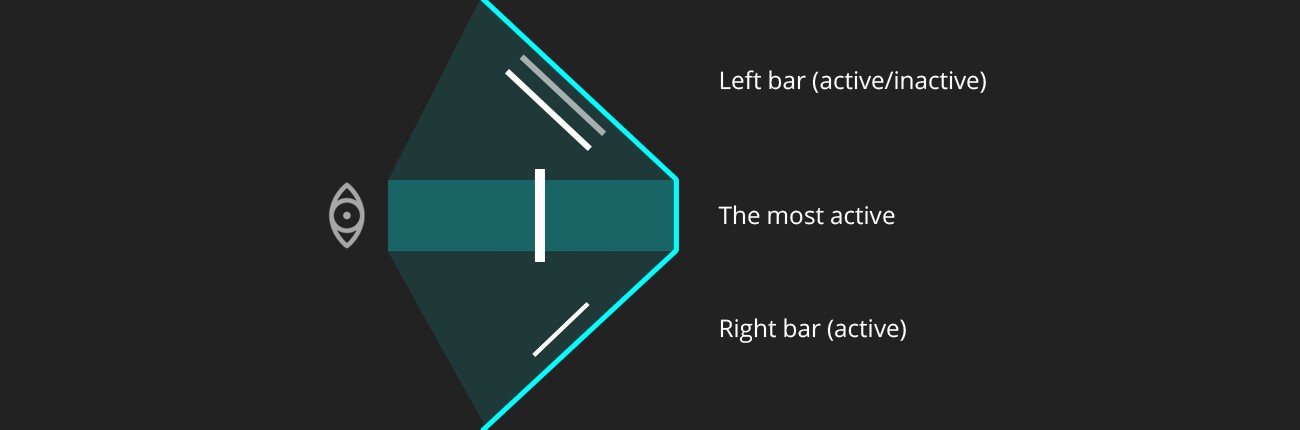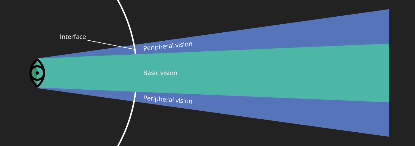 我曾經開發過一套輔助性的現實增強界面,它們分成兩個部分,置于主視野外的左右兩側,右側呈現主要的信息,左側為次要信息。