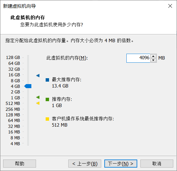 7、這里設置“虛擬機內存”為“4 GB”,一般選擇“2 GB”即可,下一步: