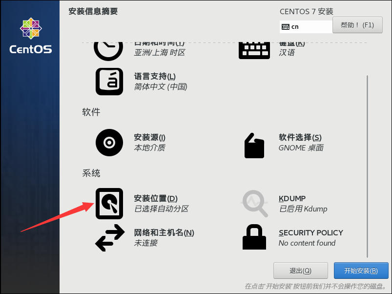 5、點擊“安裝位置”,選擇“自動配置分區”,完成:
