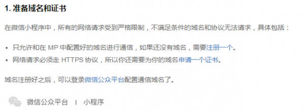 從中我們發(fā)現(xiàn),微信對于網(wǎng)絡(luò)請求非常嚴(yán)格,不滿足條件的域名和協(xié)議無法請求,域名注冊好之后,才可以登錄微信公眾平臺配置通信域名。