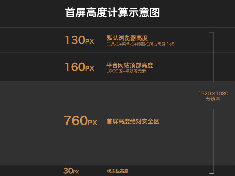 對于首屏高度的具體值并不是一成不變的,首屏的高度界定,只是是對主要信息畫個安全框而已,用來保證用戶在打開頁面時第一眼看到的信息是完整的,和直接的。