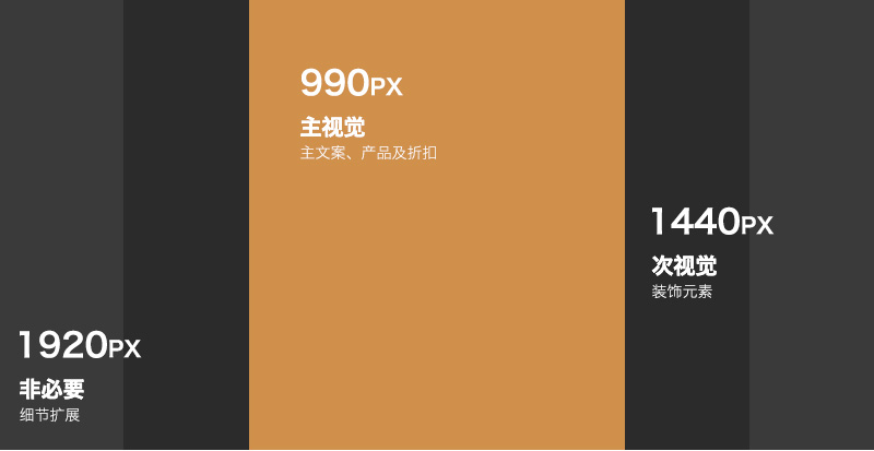 寬度1440-1920間做可有可無的元素,用于從主視覺延伸出來的,或者是用于細節表現的;對于這一部分的表現,屬于最后再完善的地方,中心還是在主視覺區域的刻畫上。