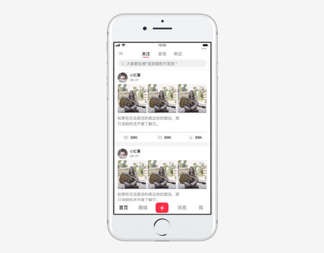 1)有一個核心功能比其它功能更重要,更需要強調(diào)。常見于UGC產(chǎn)品,比如微博、閑魚、抖音以及原型案例中的小紅書。