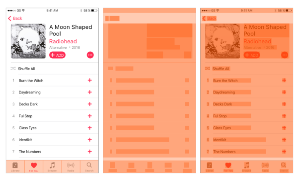 拿 Apple Music 舉個小栗子。Apple Music 的專輯頁面大致可以分為三個大視圖: