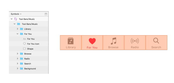 我們再來觀察一下 Tab Bar 在 Sketch 里面的圖層結構。