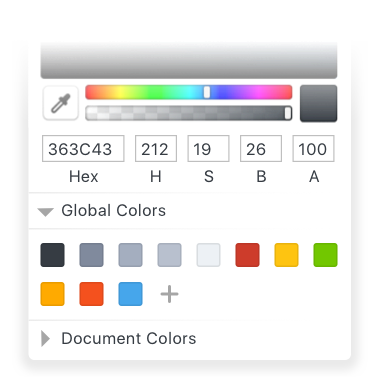 所以在設計 UI 的過程中請妥善保管你選定的顏色。如果時間充裕的話最好專門新建一個畫板來保存你的顏色并使用 Sketch Measure 與其他 asset 一并輸出。這樣開發就能夠復制上面的十六進制碼直接粘貼到他們規定顏色的文檔里面去了。