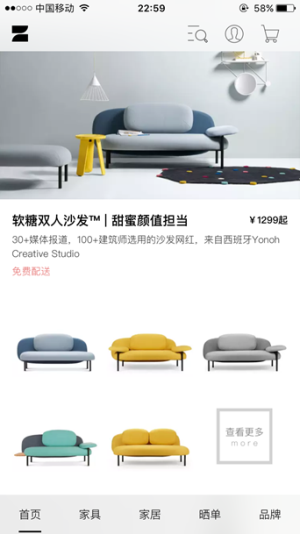 售賣原創設計家居品牌的平臺。不知道有多少人像我一樣,去宜家買東西,只會選擇一些小玩意,大的家具不太會去選擇宜家的。因為宜家的一些大家具,材質以刨花板和密度板居多,用久了就容易變形。其實性價比不是太高。一些大的裝飾城里的家具感覺又太普通,缺乏設計感。造作上有很多極具設計感的家具,適合年輕消費者。