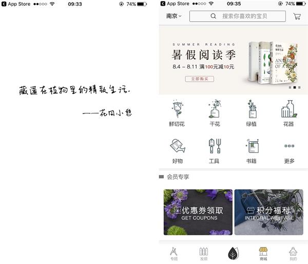 這個應用主要是幫你挑選家居各種物品搭配。適用于追求生活品質,喜歡家居中各種各樣精致小物件搭配的用戶群體。里面的各種專題內容質量很高,值得翻閱。首頁下banner專題設計上的圖標設計非常精致。與板塊內欄目上的圖標相對應,板塊描述非常清晰。