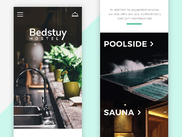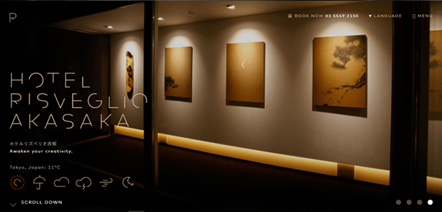 這個例子看起來與深色和小字體很不一樣。它看起來既時髦又新潮,這表明這家酒店的風格也值得花錢。