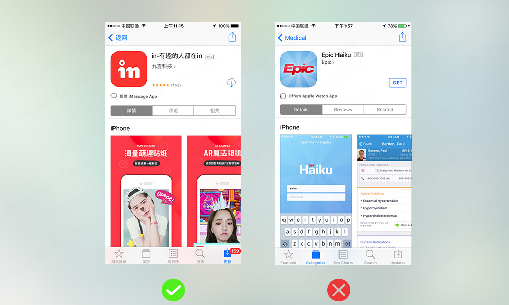 當用戶選擇進入應用的詳情頁時,必然是對應用產生了興趣,這時候用戶所關心的是能否獲取想要的信息,亮點原則是突出產品亮點,“能用兩個字說完的特性,就盡量不要寫兩句話”,用戶的時間很寶貴,尊重用戶時間的同時,也為產品自身創造了不錯的自我介紹時間。