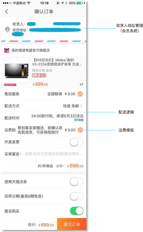 結算頁,也叫訂單確認頁(對接商品、促銷、交易、訂單、會員)