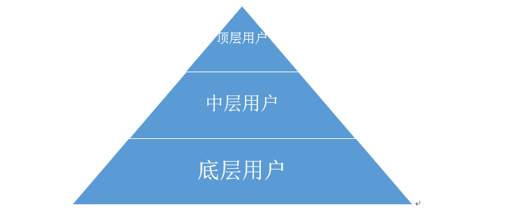 分析分析其三個(gè)用戶層,頂層用戶負(fù)責(zé)產(chǎn)出優(yōu)質(zhì)的內(nèi)容吸引底層用戶的評論、點(diǎn)贊以及關(guān)注,而底層用戶通過瀏覽產(chǎn)生大量的流量,中間層用戶是普通用戶發(fā)布優(yōu)質(zhì)的內(nèi)容想成為頂層用戶,通常這是八九不離十的三層用戶群了。