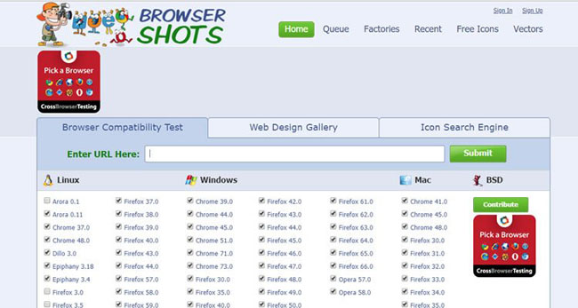一站式拍攝115種不同瀏覽器上的網(wǎng)站交叉測試 Shooting BrowserShots。