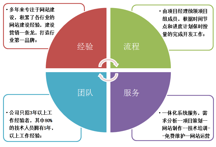 一體化系統服務,需求分析--項目策劃--網站制作--技術培訓--免費維護--網站運營