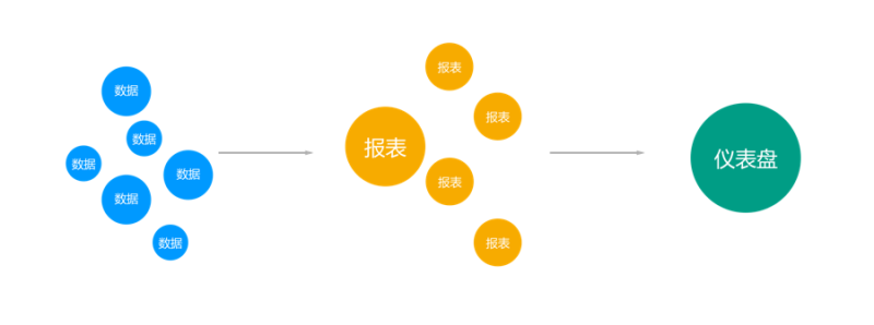 到這個階段,通過功能分類,內容信息分組及用戶“動線”,基本可以總結出產品的3個相互關聯,卻又相對獨立的信息單元:數據源、報表、儀表盤。