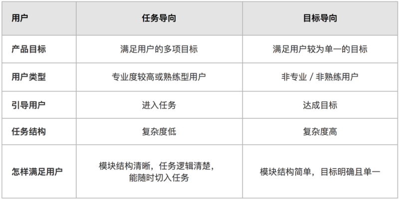 總而言之,一般情況下操作目標越是單一、任務結構越是復雜的產品越適合使用目標導向的信息架構,而任務結構越是簡單的產品就越適合任務導向的信息架構。而從用戶角度出發一般而言,目標用戶若為普通甚至業余用戶,則更適用目標導向;目標用戶若為專業人員,則更適用于任務導向。