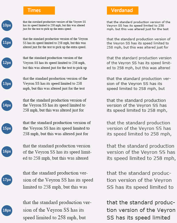 很長一段時間里,在互聯網上我們會注意這樣的一個現象,國外網站大部分以非襯線體為主,而中文網站基本就是宋體。其實不難理解,襯線字體筆畫有粗細之分,很小字的情況下細筆畫就被弱化,受限于電腦的分辨率,10-12px的襯線字體在顯示器上是相當難辨認的(見下圖);同字號的非襯線體筆畫簡潔而飽滿,更適于做網頁字體。windows下,中文宋體小字點陣的特性,12px、14px的字號顯示仍然相當清晰美觀,便于閱讀。這也就是為什么大多網頁設計制作人員容易機械性的選用特定字號或英文或中文的字體。