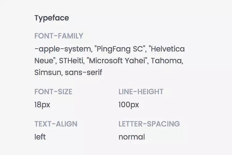 在了解了瀏覽器的字體調用規則后,再排除 FONT-FAMILY 列表中一些我們日常用到常見字體,例如 “ PingFang SC(蘋方-簡)”、“ Helvetica Neue ”、“ STHeiti(華文黑體)”、“ Microsoft Yahei(微軟雅黑)”、“Simsun(宋體)”,最后得到你想要字體就非常簡單了。