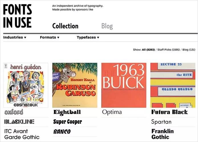 還有一個網站 Fonts In Use 專門收集各類設計作品中的所使用的西文字體,不妨可以做為參考。