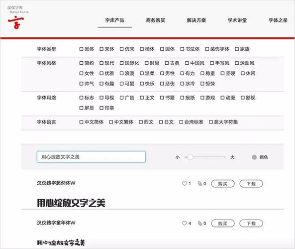 因為字體公司之間的并購,獨立的小型字體工作室已所剩不多。各種字體大廠(例如方正、漢儀、造字工房)都提供了字體列表實時預覽你所自定義的文字的功能。在你知道了所查字體的大致分類以及特性之后再使用這類字體大廠提供的篩選條件來縮小尋找范圍,往往有時候會產生奇效。