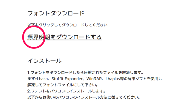 開啟「源界明朝」開發者網頁,找到「フォントダウンロード」下方的鏈結,點擊后就能免費下載字體壓縮包。