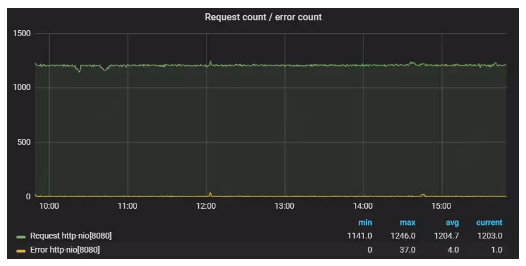 圖1:某Tomcat實例在1000+qps下請求數和錯誤數的比例