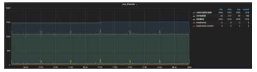 JVM線程數的曲線統計,能夠讓我們更直觀的看到JVM線程當前的運行情況。