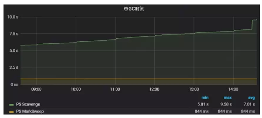 圖9:某Tomcat實例默認垃圾回收器總GC時間曲線