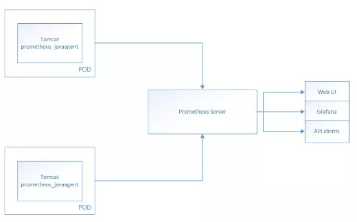容器環境下Tomcat+Prometheus+Grafana簡圖如下: