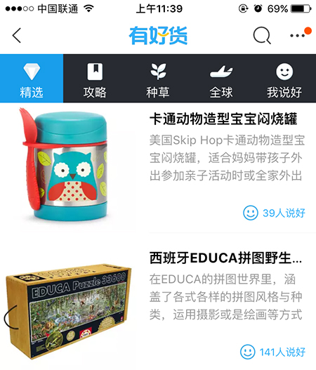 可選擇的商品變得多了起來,選擇困難癥人群卻總也挑不到自己喜歡的商品,淘寶APP的有好貨會根據用戶最近查看的商品,推薦同類型商品,小編最近搜索了兒童餐具,淘寶APP的有好貨則根據我的瀏覽歷史,推薦了一款悶燒罐和一款拼圖。推薦拼圖看上去特別奇怪,但是,如果用戶不明確自己想要搜索的物品,而是出于“為小孩子挑選禮物”的場景而搜索兒童的餐具,那淘寶APP為用戶推薦拼圖也就說得通了。