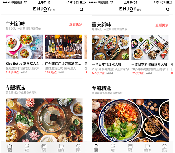 在場景營銷中,地點的精確性其實也是非常重要的。 小編很喜歡使用的一款美食電商APP ENJOY,在小編到重慶出差的時候,為我推薦了重慶的美食,真是又便宜又美味,試想一下,如果當小編到重慶的時候 ,ENJOY還是為我推薦廣州的美食,那小編看了半天流了半天的口水不就白流了嗎。