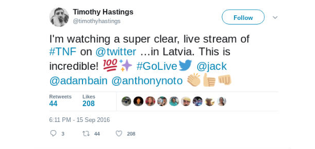不過今年亞馬遜在NFL前面擊敗了Twitter,今年達成了10場周四晚上足球比賽的交易,花費了5000萬美元,而FacebookLive已經與FoxSports達成了冠軍杯足球賽的比賽。