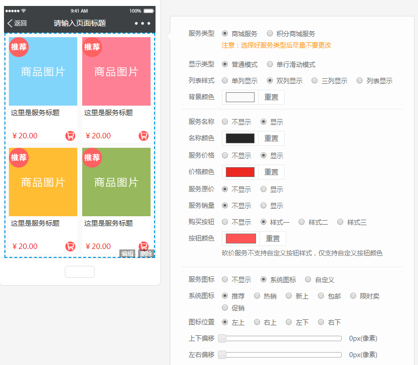 不可否認(rèn),商品詳情是展示商品信息的主要位置,用戶購買與否很大程度上取決于商品詳情頁面的設(shè)計。但是在進入商品詳情頁面之前,首先面對的是商品列表頁面,商品列表頁面設(shè)置的好壞決定了用戶進入詳情頁面的概率,所以商品列表組件在配置的時候也是比較復(fù)雜的,主要配置信息有: