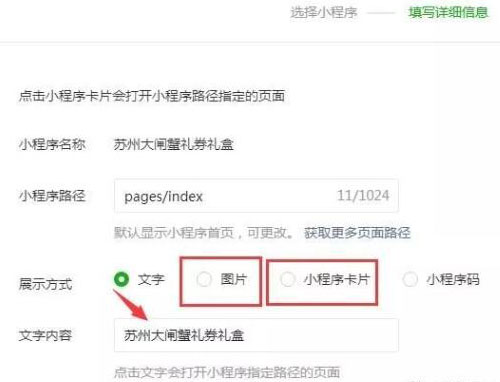 比如舉例本篇,插入下大閘蟹的小程序哈,點它即可查看蘇州大閘蟹禮券禮盒~