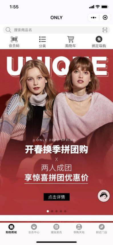 案例背景:2018年3月,綾致就與騰訊智慧零售部門合作推出小程序商城WeMall,該小程序商城被稱為“線上二樓”,以線下導購為中心建立社群,通過Wemall完成服務,比如導購可以通過朋友圈或私聊發布營銷內容,顧客可以直接通過分享跳轉購買,導購直接獲得銷售提成。