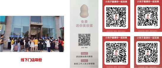 線下:這是好日記正佳店的活動,我們會發現好日記不僅僅在線上吸粉,在線下粉絲留存也做得非常好,他通過免費送化妝彩蛋,利用活碼將線下的粉絲留存到微信號里進行維護。