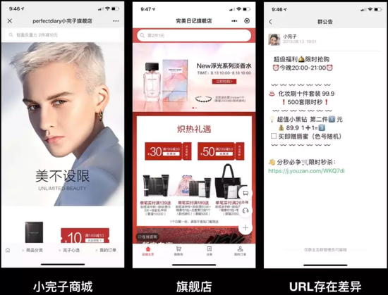 由于天貓和微信無法互通,好日記在微信的購買渠道是通過小程序商城來完成購買閉環,我們發現每個群推送的商品鏈接中都存在不同的UTM代碼,這說明,每個賬號背后的運營人員都背著一定的KPI,而UTM正是追蹤他們業績用的。