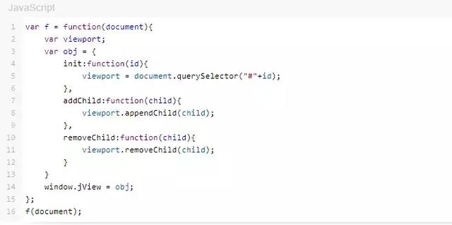 obj 是在 f 中定義的一個對象,這個對象中定義了一系列方法, 執行window.jView = obj 就是在 window 全局對象定義了一個變量 jView,并將這個變量指向 obj 對象,即全局變量 jView 引用了 obj . 而 obj 對象中的函數又引用了 f 中的變量 viewport ,因此 f 中的 viewport 不會被GC回收,會一直保存到內存中,所以這種寫法滿足閉包的條件。4、 簡單的總結語