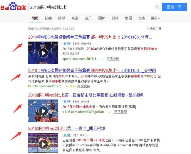 如果我們搜索“鄒市明大戰泰國拳王”或者“2016鄒市明vs坤比七”這種長尾關鍵詞,百度才會給出你最想要的答案。