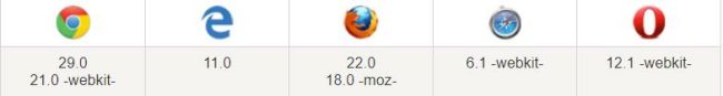 流式布局是繼float布局之后CSS3中新出的一個布局系統,它相對于float布局有很多的便利之處,流式布局可以自適應各種屏幕的寬度,對元素的大小進行實時的更變,相對于UI框架中自帶的布局系統,流式布局的學習成本也是非常低的。但是流式布局在PC端的性能就不那么好了,因為它對瀏覽器版本的要求非常高,所以在實際的開發中也就不怎么使用了。下面我特意準備了一張圖片簡單的介紹下5大瀏覽器對流式布局的支持版本。