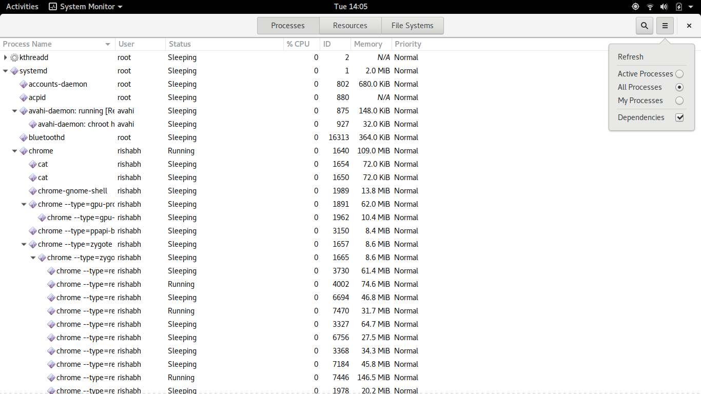 你可以通過 System-Monitor 查看當前進程。