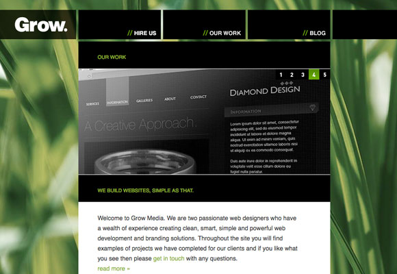 2.Sprout的網站沒有沒使用大片的綠色,只是在灰度較高的背景上加了一些綠色的裝飾來做點綴。但這些元素并不只是美觀而已,同時也在無形中指引著我們,反差明顯的綠色和黑灰色讓用戶能輕而易舉的分辨出信息重點。