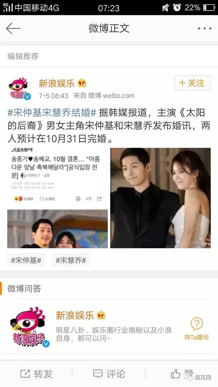 消息一出,網絡紛紛刷屏,很快又成了網友忙碌的一天,第一波搜索對象是雙宋的定情劇《太陽的后裔》、宋慧喬的前男友玄彬。