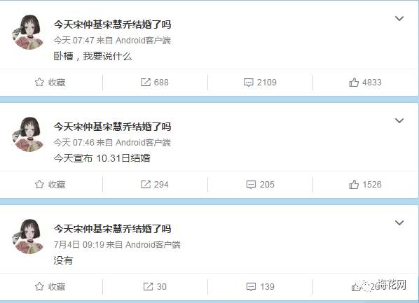 最厲害是炸出了個許愿微博,網友紛紛勸到,趕緊改微博名吧,就叫“今天宋仲基宋慧喬有孩子了嗎”?