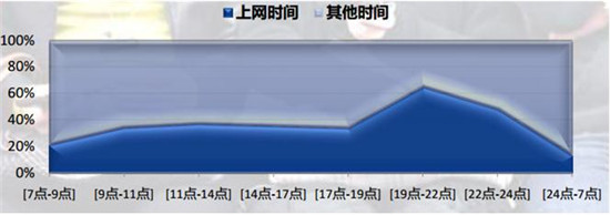 從時間上來說,人均日均移動設備上網時間為183分鐘,并集中于每晚19點-22點。