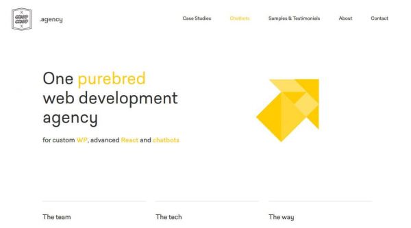 在UI元素中(如圖標和導航元素等)使用多邊形元素也是最近比較流行的設計技巧。網頁設計中具體使用什么樣、多大的多邊形并沒有一套約定俗成的規則,這完全取決于設計師的創意和想法。不過,就算是一個微小的多邊形都能讓某個圖標或導航菜單項更加突出。再加上不同色調的應用,這種設計元素絕對能夠有效抓住用戶的注意力。Chop Chop Agency就是一個很好的栗子。它在網站中使用不同深淺的黃色拼接出了一個多邊形的箭頭,用來引導前往主導航菜單(當然,拼接的多邊形并不凌亂)。在極簡主義布局之下,這個多邊形的圖標很是抓人眼球,在保持布局干凈的同時讓視覺焦點突出,有效地指引了訪客的瀏覽。除此以外,這個網站還有一個隱藏的設計:多邊形的箭頭會隨著頁面的變化進而轉化為其他形狀,給用戶提供截然不同的體驗,為枯燥的瀏覽過程增加趣味。