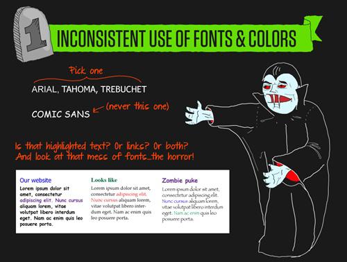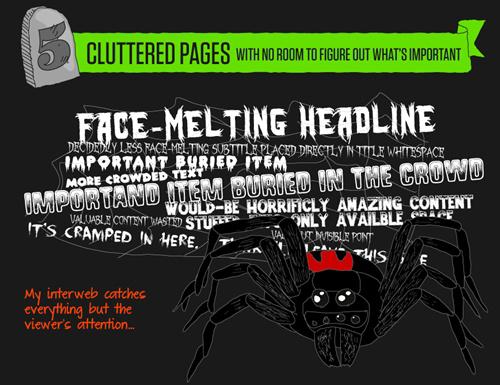 很多人都曾經學過網站建設,但是能夠成為設計師的卻不多。不過許多人仍然希望能夠學習一些網站建設的技能,但往往越修越糟糕。以下我們找到了一份以萬圣節為主題,以十分幽默的呈現網站建設新手,經常犯的設計錯誤。