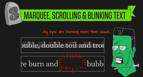 網頁語法也是許多初次接觸網站建設者(尤其是自學者)十分愛用的特效之一,因為他看起來「很專業」,但其實專業的設計師使用跑馬燈效果時,都會十分的慎重,因為跑馬燈會讓文字看起來不太易讀,而閃爍特效也是如此。
